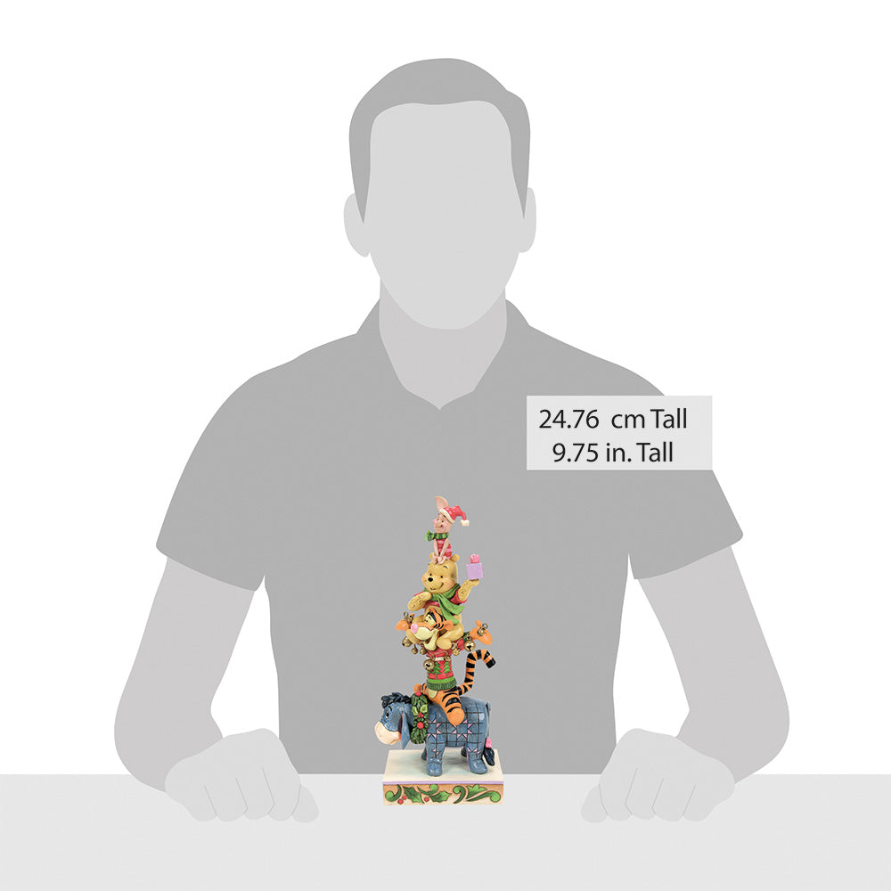 Die Winnie Puuh & Friends Christmas Edition Figur von Jim Shore zeigt die beliebten Disney-Charaktere in einer besonders fröhlichen und festlichen Szene. Winnie Puuh, Ferkel, Tigger und I-Aah sitzen in einer verspielten Pyramide übereinander gestapelt und versprühen pure Weihnachtsfreude. Mit warmen Farben, detailreichen Mustern und den typischen Verzierungen, die Jim Shores Kunst ausmachen, wird die Szene auf liebevolle Weise veredelt. Die Figur vereint Humor, Herzlichkeit und festliche Stimmung und ist damit ein wundervolles Sammlerstück von Enesco, das sowohl Disney-Fans als auch Liebhaber stimmungsvoller Weihnachtsdekoration begeistert.
