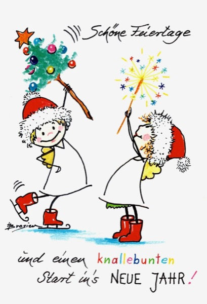Grußkarte Klappkarte Heidemarie Brosien (11 x 15 cm) - Schöne Feiertage und einen knallbunten Start in's NEUE JAHR !
