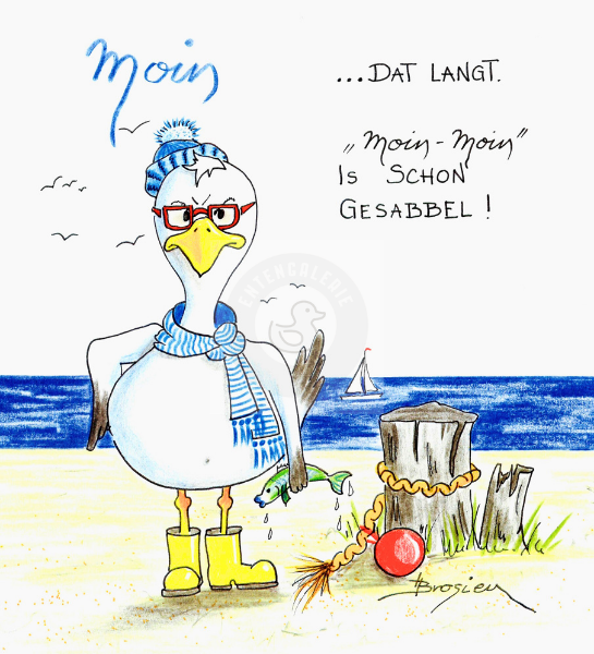 Spruch: Moin...Dat langt. "Moin - Moin" is schon Gesabbel!