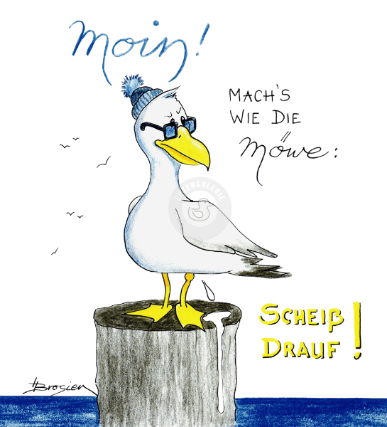 Spruch: Moin! Mach's wie die Möwe: Scheiß drauf!